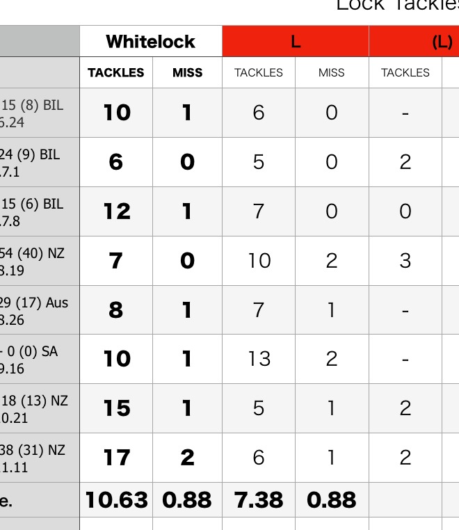 ニュージーランドのロックのプレイヤーが気になったので、数ゲーム分のスタッツを調べてみると、やはり違いが!