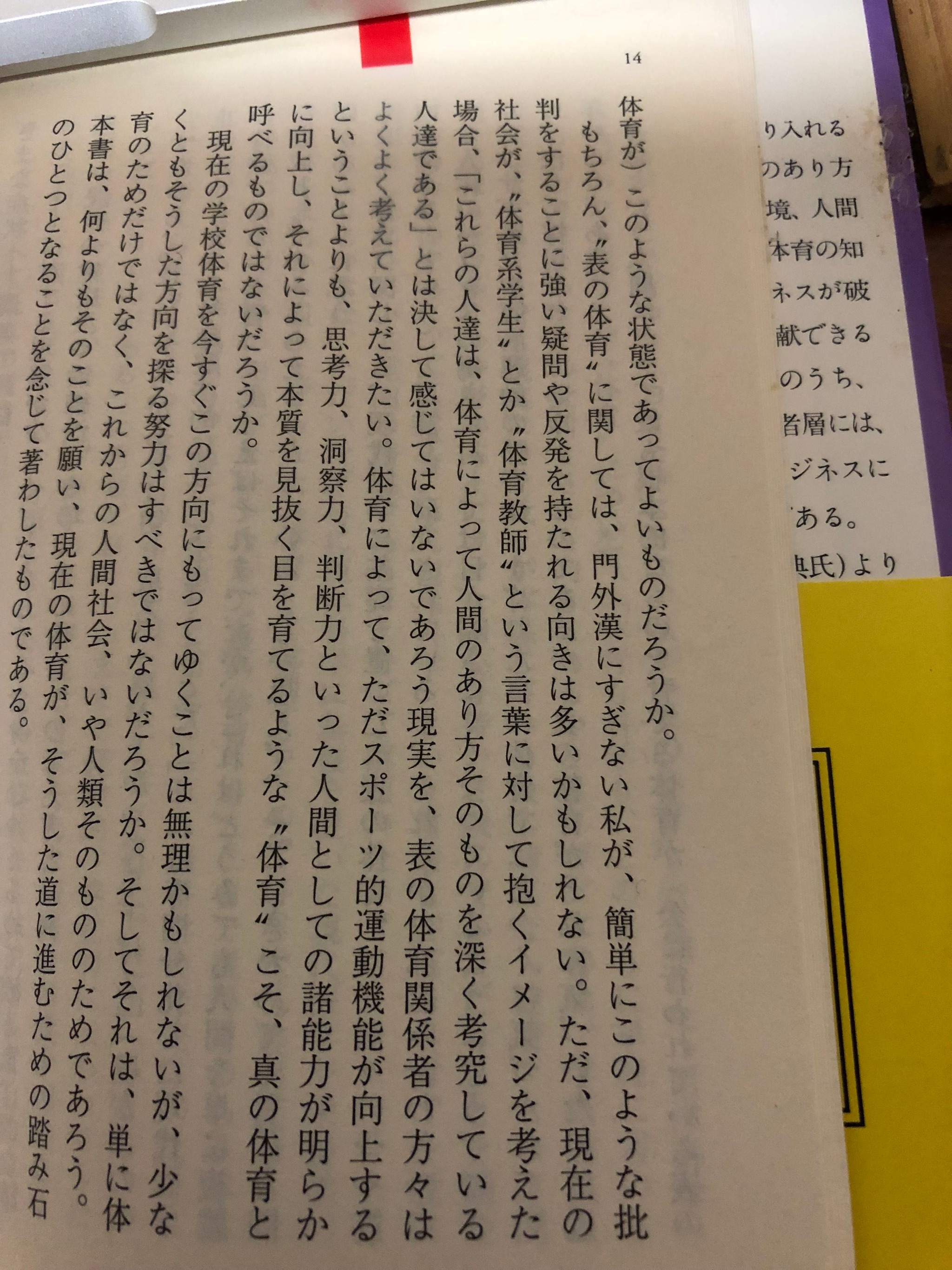 体育という言葉は、手垢が付いて先入観が強く付きまといますが、「ただ、スポーツ的運動機能が向上するということよりも、思考力、洞察力、判断力といった人間としての諸能力が明らかに向上し、それに追って本質を見抜く目を育てるような“体育”こそ、真の体育と呼べるものではないだろうか。」